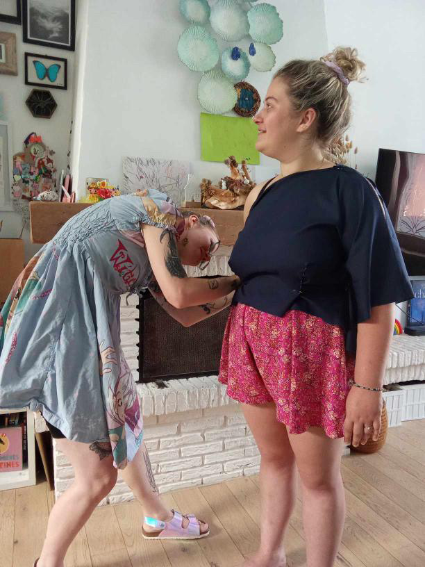Nous nous rencontrons après quelques mails, et je procède à un moulage du tissu sur votre corps afin d'obtenir un patron le plus fidèle possible à votre morphologie.